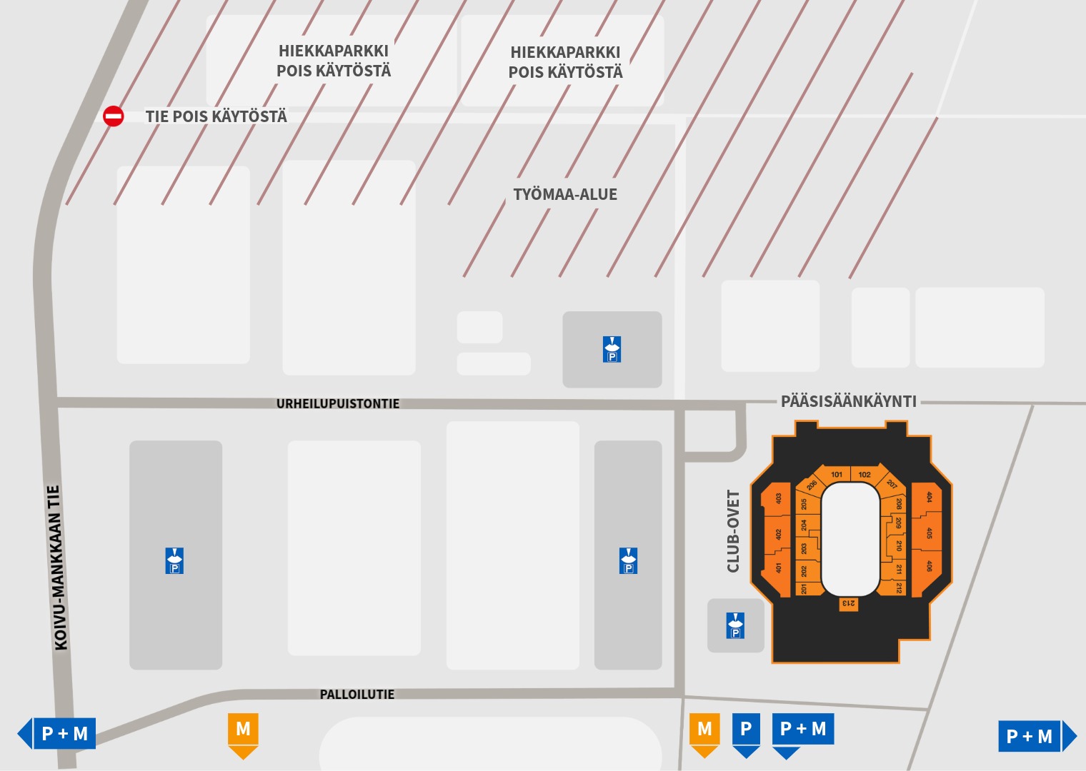 Suosittelemme vahvasti julkisen liikenteen, liityntäpysäköintien ja kimppakyytien hyödyntämistä.